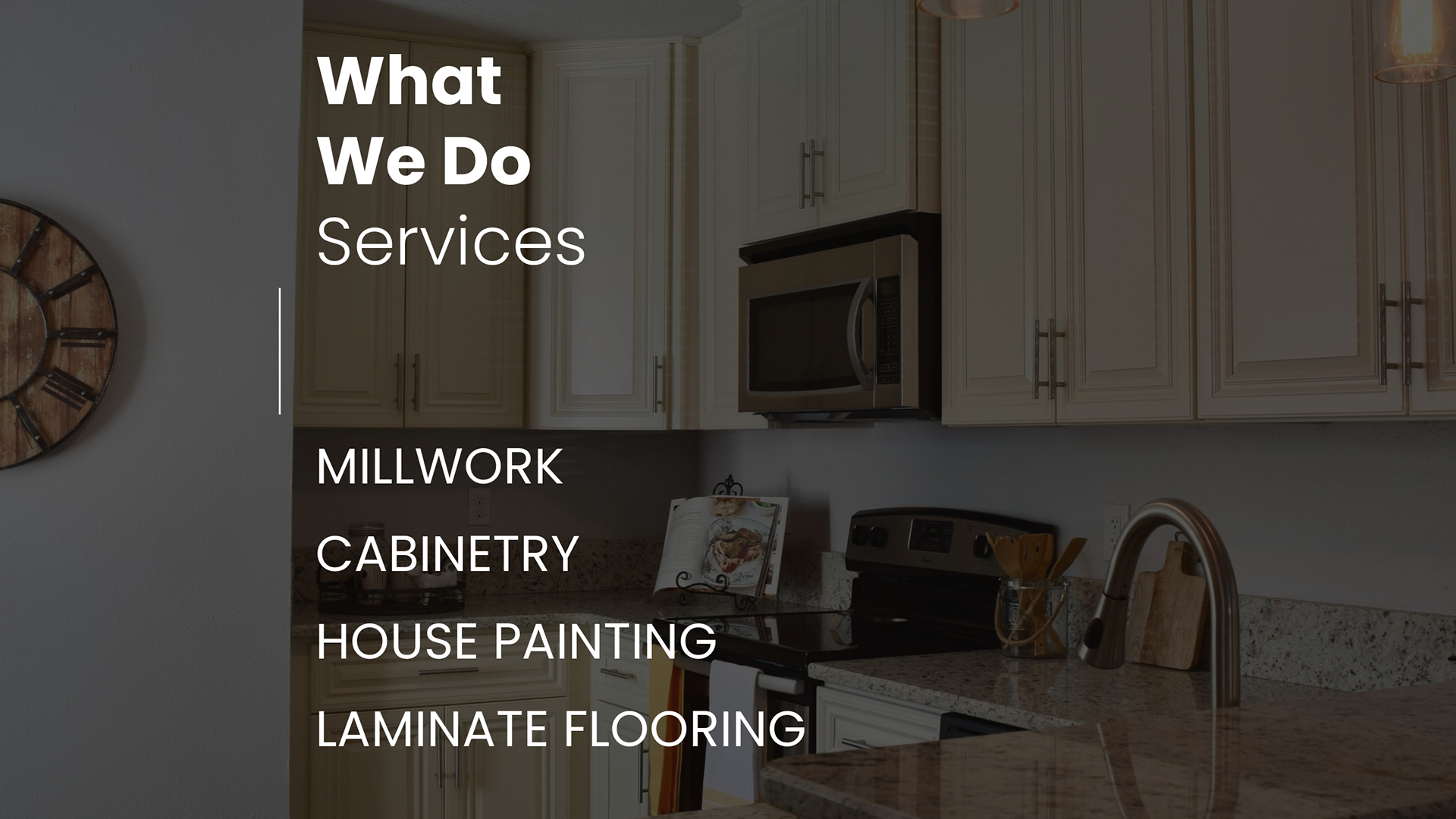 Among our services we offer: Millwork | Cabinetry | House Painting | Laminate Flooring